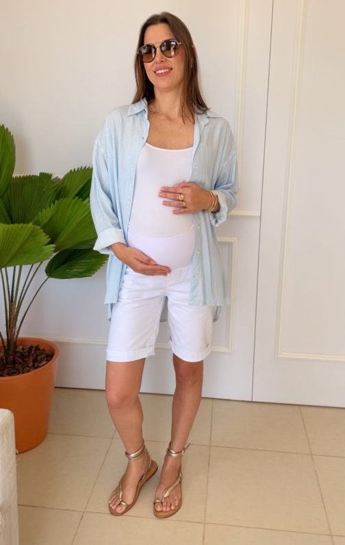 A Bermuda Gestante Branca foi desenvolvida para acompanhar o crescimento da barriga com muito estilo. Possui cós anatômico em elástico, que se ajusta perfeitamente ao corpo sem apertar, garantindo máximo conforto em todas as fases da gestação.