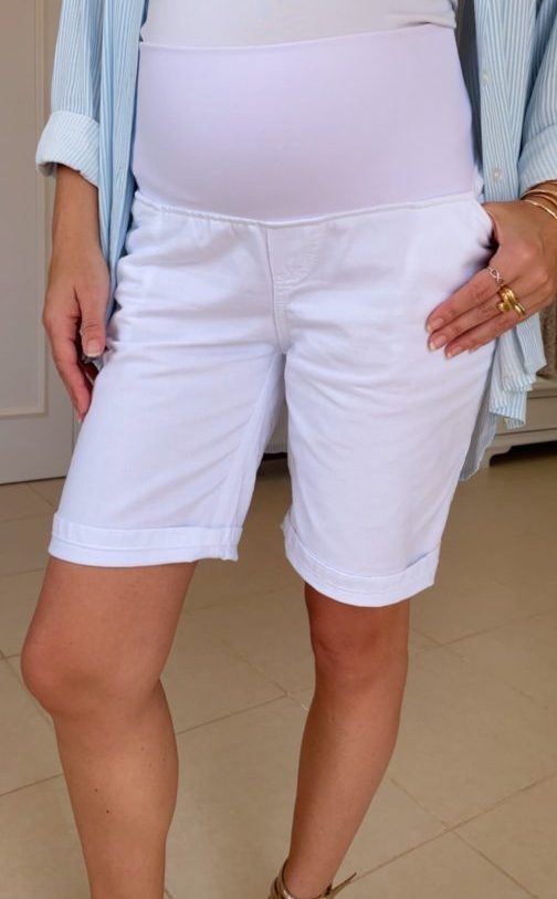 Bermuda Gestante Branca com Cós Anatômico em Elástico e Bolsos