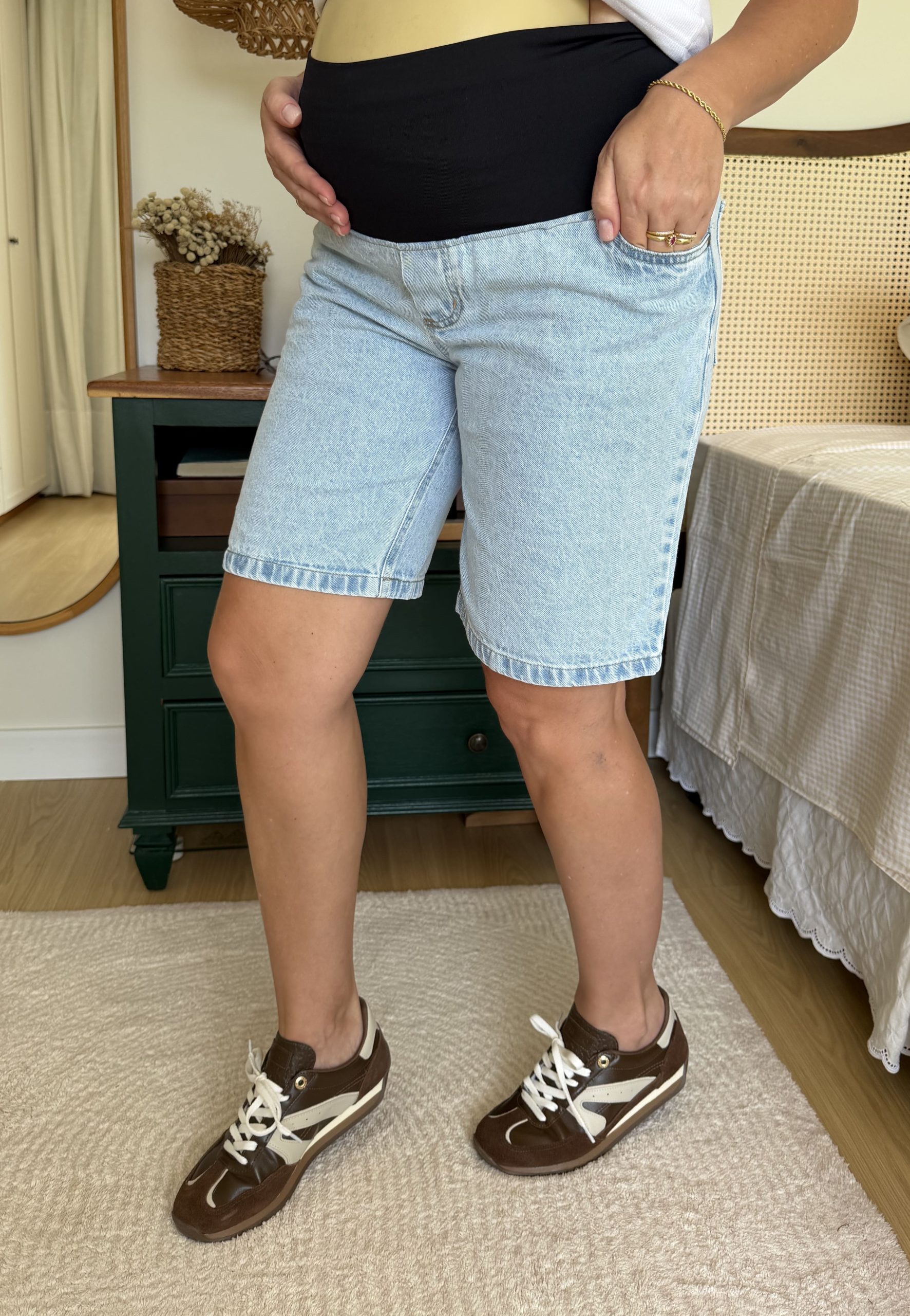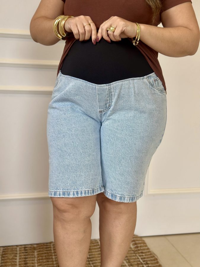 Bermuda Gestante com Cós Anatômico em Elástico e Bolsos