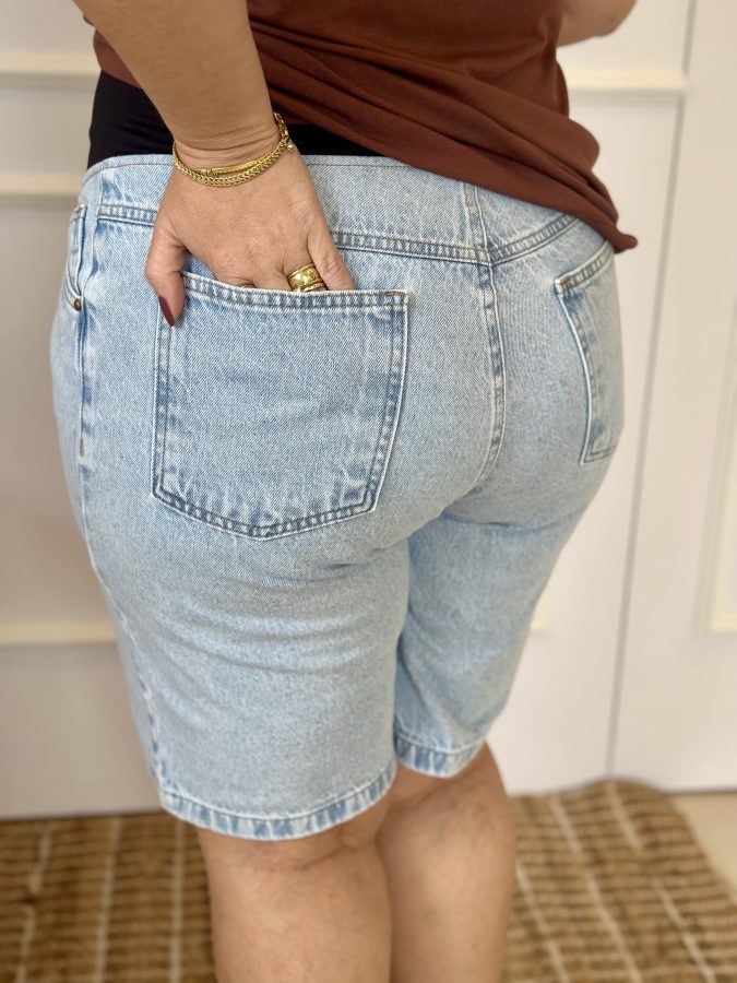 Confeccionada em tecido leve e resistente, conta com bolsos frontais e traseiros funcionais, que trazem praticidade e um toque casual à peça. Ideal para compor looks frescos e modernos, perfeita para o dia a dia ou momentos de lazer.