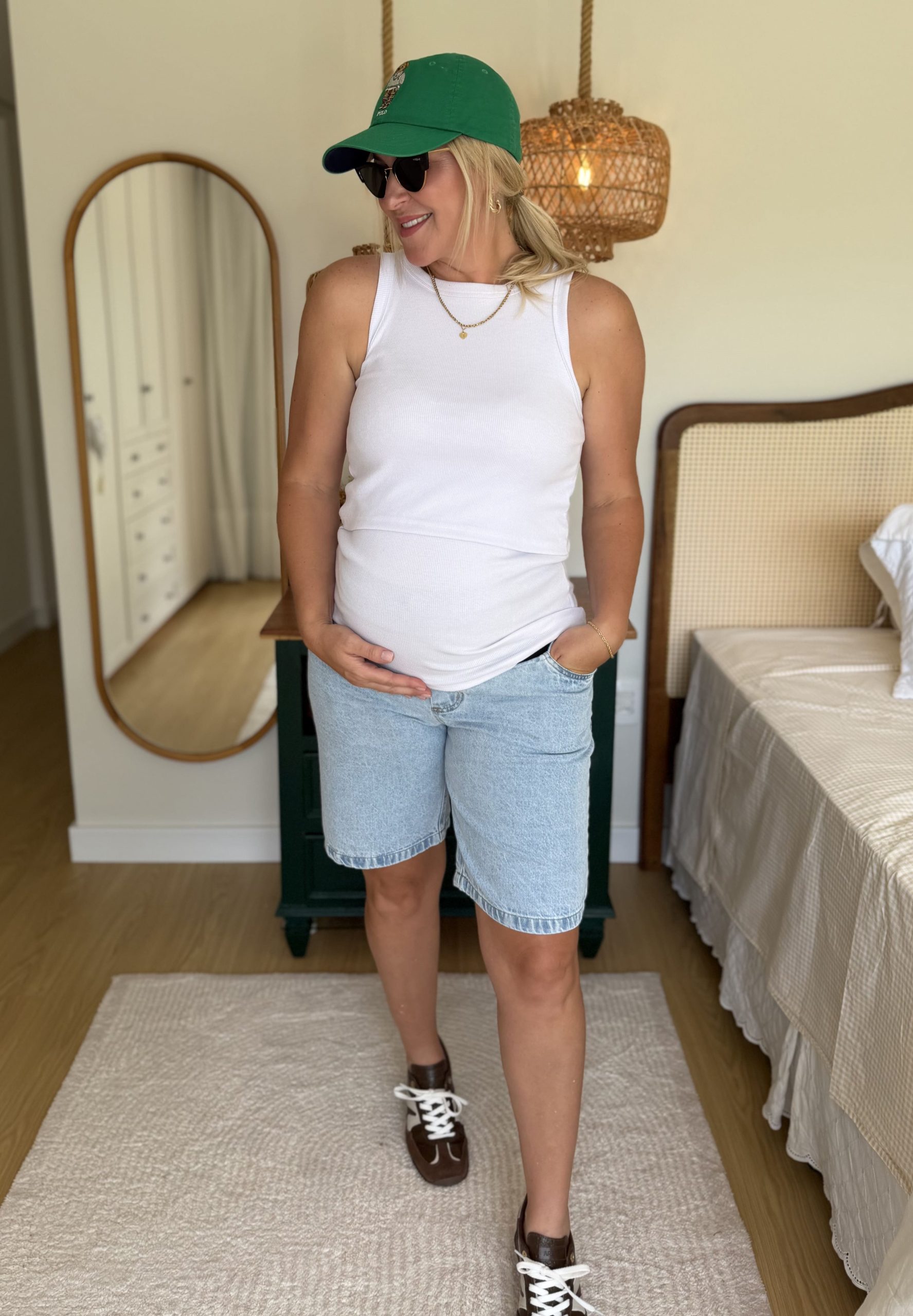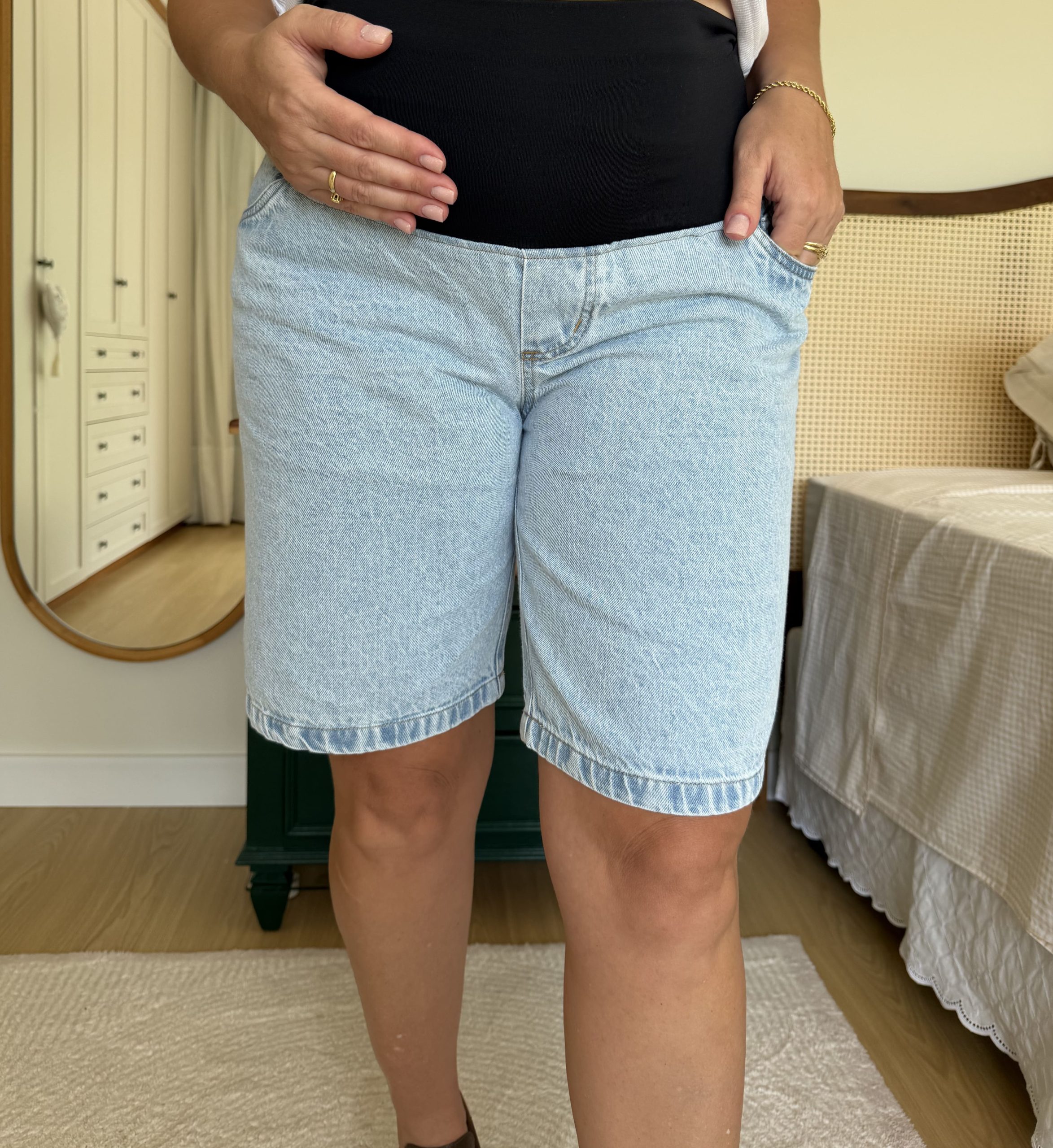 A Bermuda Gestante foi desenvolvida para acompanhar o crescimento da barriga com muito estilo. Possui cós anatômico em elástico, que se ajusta perfeitamente ao corpo sem apertar, garantindo máximo conforto em todas as fases da gestação.