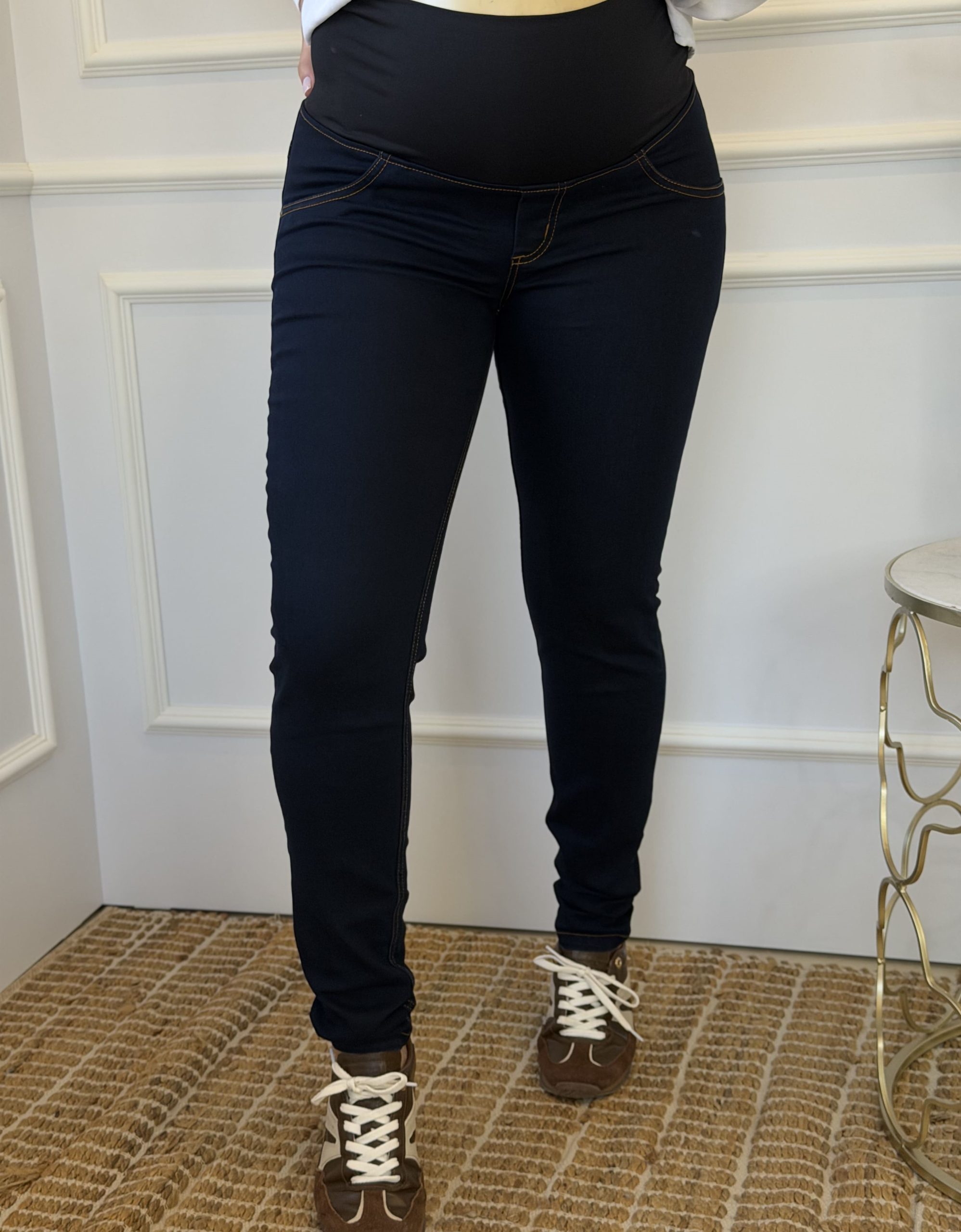 A Calça Skinny para gestantes com cós anatômico é uma opção clássica e confortável para as futuras mamães. Feita em tecido jeans tradicional, essa calça oferece um visual atemporal e versátil. O cós anatômico é especialmente projetado para se ajustar ao crescimento da barriga durante a gestação, proporcionando suporte e conforto adequados. A modelagem skinny valoriza as curvas e oferece um caimento elegante. Além disso, a cor jeans tradicional é fácil de combinar e adequada para diferentes estilos e ocasiões. Com essa calça, as futuras mamães podem se sentir confiantes e confortáveis ao longo de toda a gravidez, aproveitando a moda e o conforto em uma única peça.