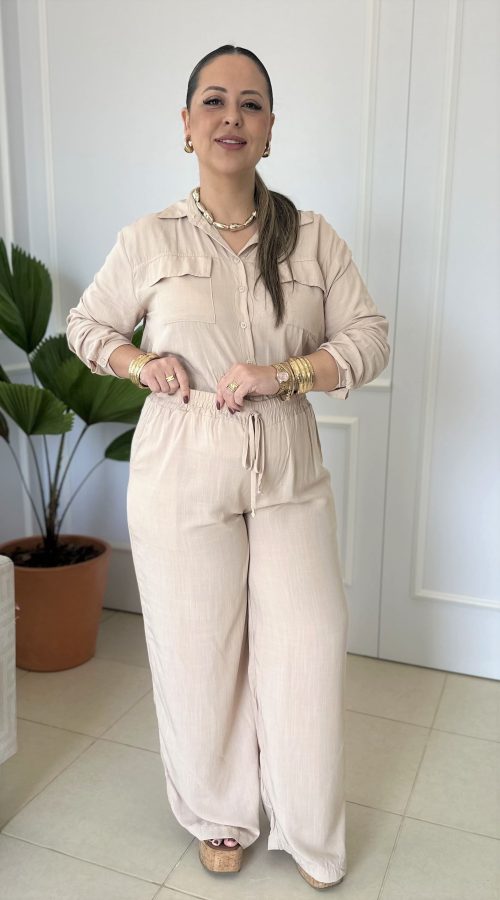 Calça Pantalona Gestante Viscolinho Ingrid Areia