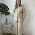 Versátil e cheio de estilo, o conjunto pode ser usado em diversas ocasiões, desde compromissos do dia a dia até momentos especiais, sempre mantendo a futura mamãe confortável e bem vestida.