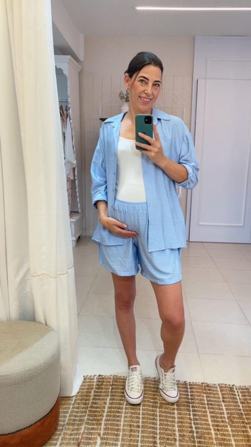 Conjunto Gestante Camisa e Shorts Aisha Azul