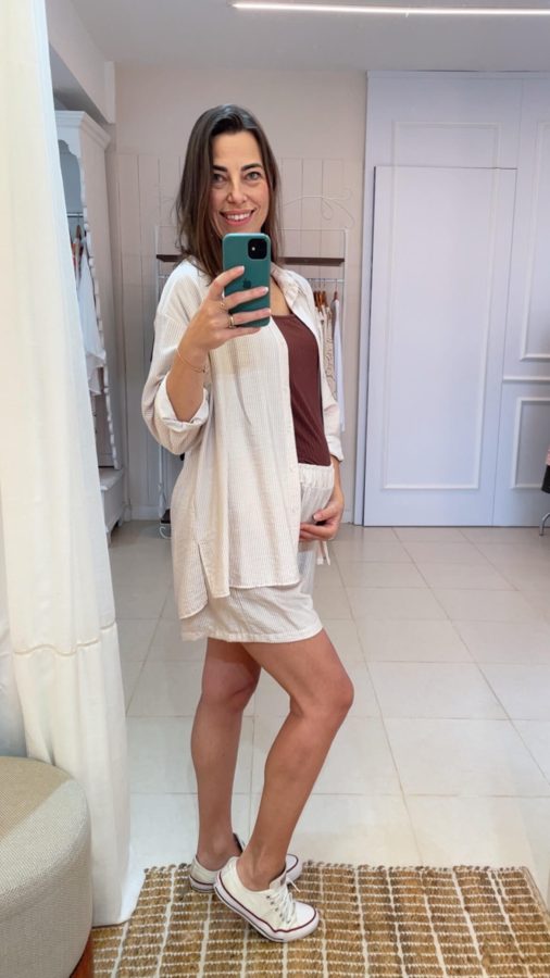 Perfeito para quem busca conforto e estilo durante a gestação! O conjunto gestante em listras é composto por uma camisa estilo oversized, que cobre o bumbum e proporciona um visual moderno e elegante, e um shorts com elástico confortável na cintura, que se ajusta ao corpo sem apertar. Confeccionado em tecido leve e macio, é a opção ideal para o dia a dia, garantindo liberdade de movimento e muito bem-estar em todas as fases da gravidez.