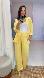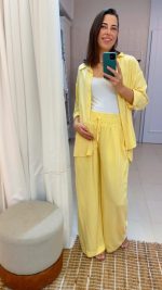 Elegância e conforto em um só look! O conjunto gestante em viscolinho traz um caimento leve e sofisticado, perfeito para acompanhar todas as fases da gravidez. A calça pantalona possui cós largo com elástico, garantindo ajuste confortável à barriga e liberdade de movimento. Já a camisa estilo oversized completa o visual com um toque moderno e versátil, ideal para usar solta ou levemente ajustada. Um conjunto prático, estiloso e atemporal — perfeito para o dia a dia ou ocasiões especiais.