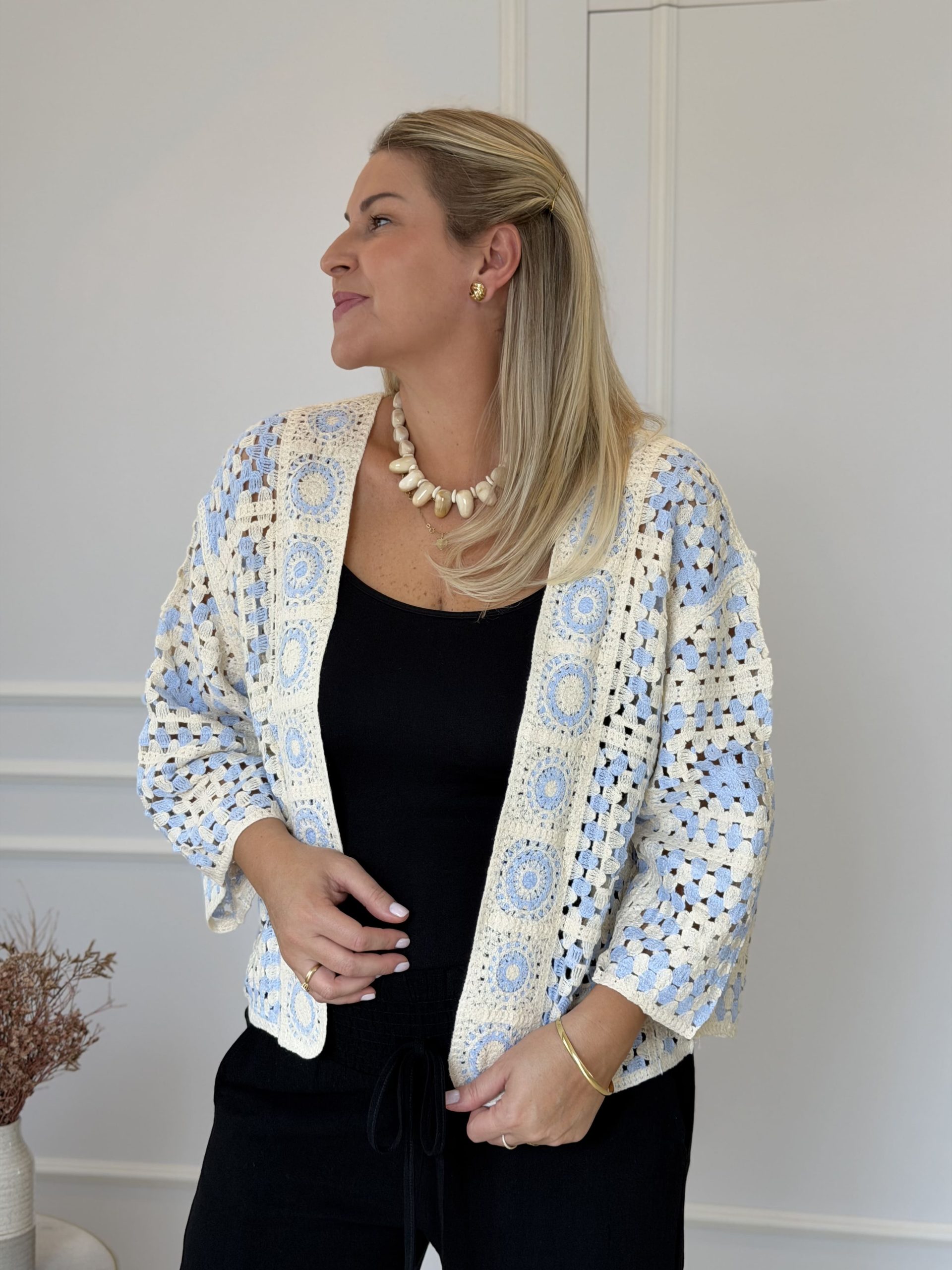 O kimono curto em crochê é a peça ideal para quem busca estilo, leveza e um toque artesanal no visual. Produzido em crochê, ele valoriza o trabalho manual e traz um design delicado que combina perfeitamente com diversas produções.