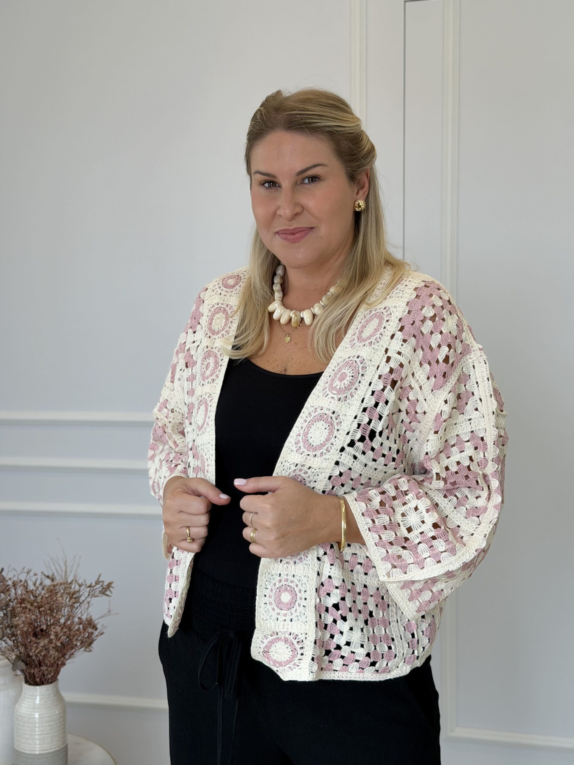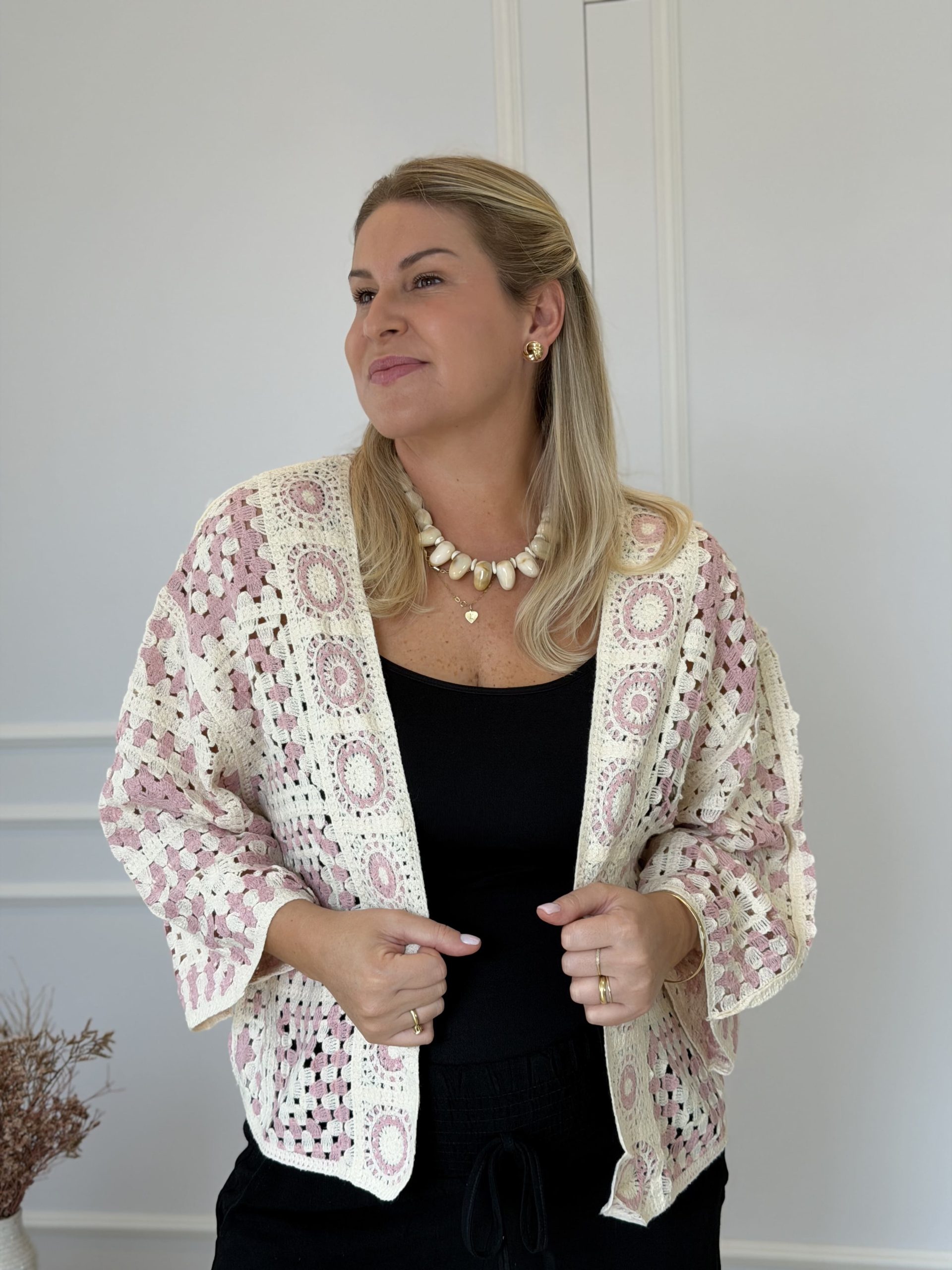 O kimono curto em crochê é a peça ideal para quem busca estilo, leveza e um toque artesanal no visual. Produzido em crochê, ele valoriza o trabalho manual e traz um design delicado que combina perfeitamente com diversas produções.