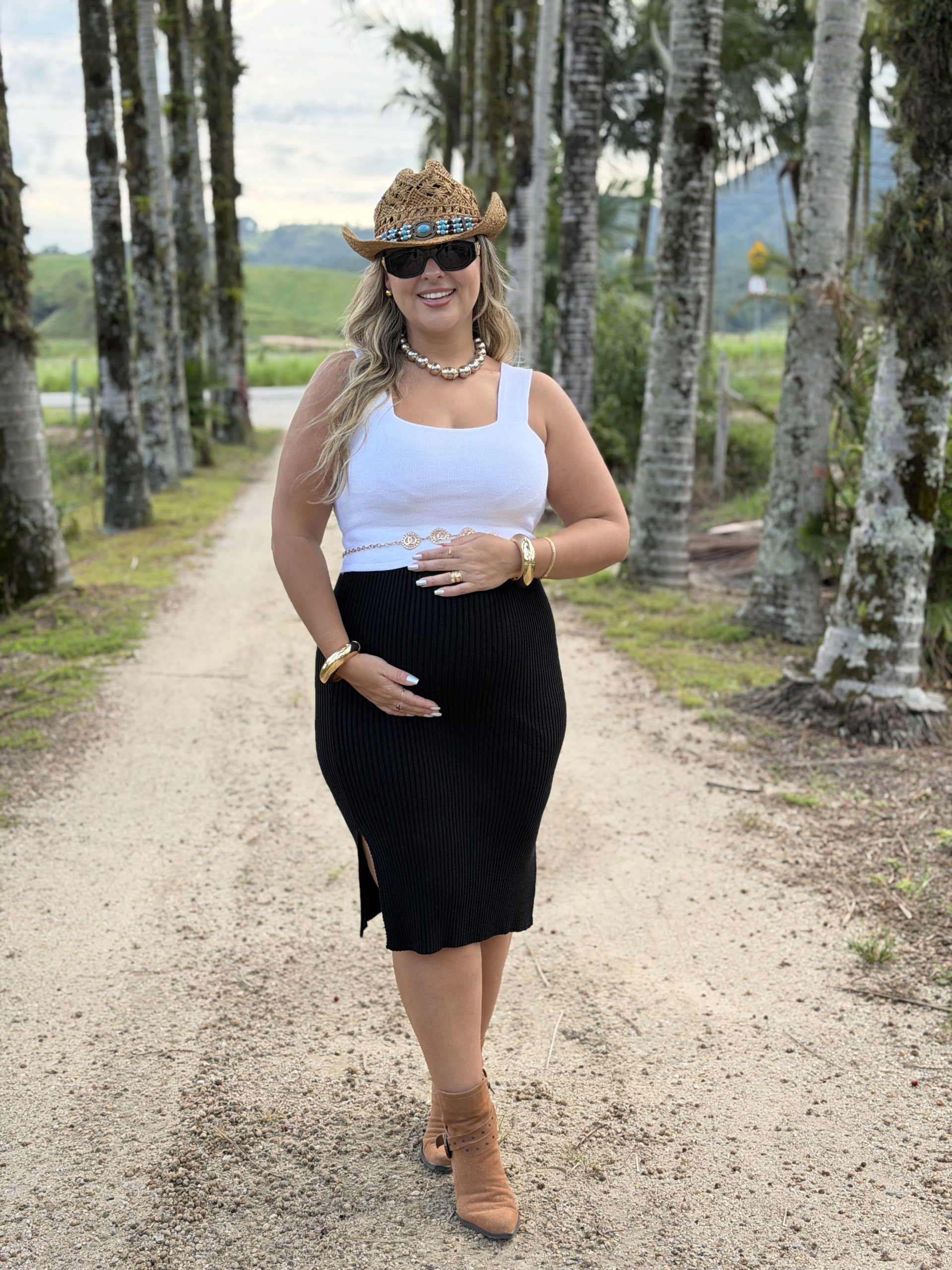 Saia Gestante Midi Tricô . Uma peça super estilosa e elegante. Ideal para várias ocasiões. Use com salto com tênis ou rasteira e faca looks incríveis