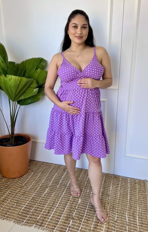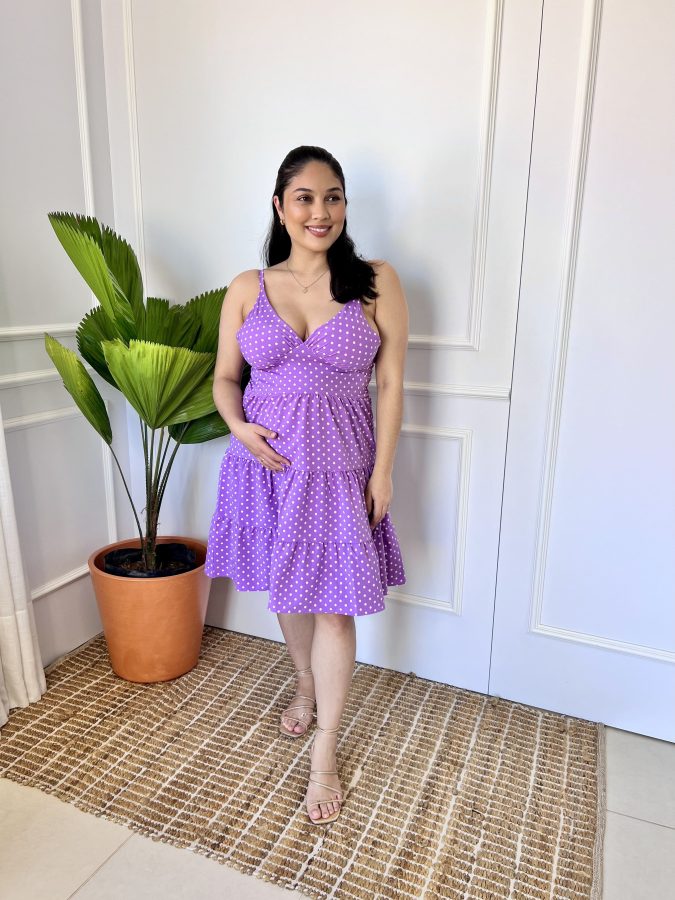 Vestido Gestante Alça Soltinho Poá Antonela Lilás
