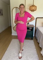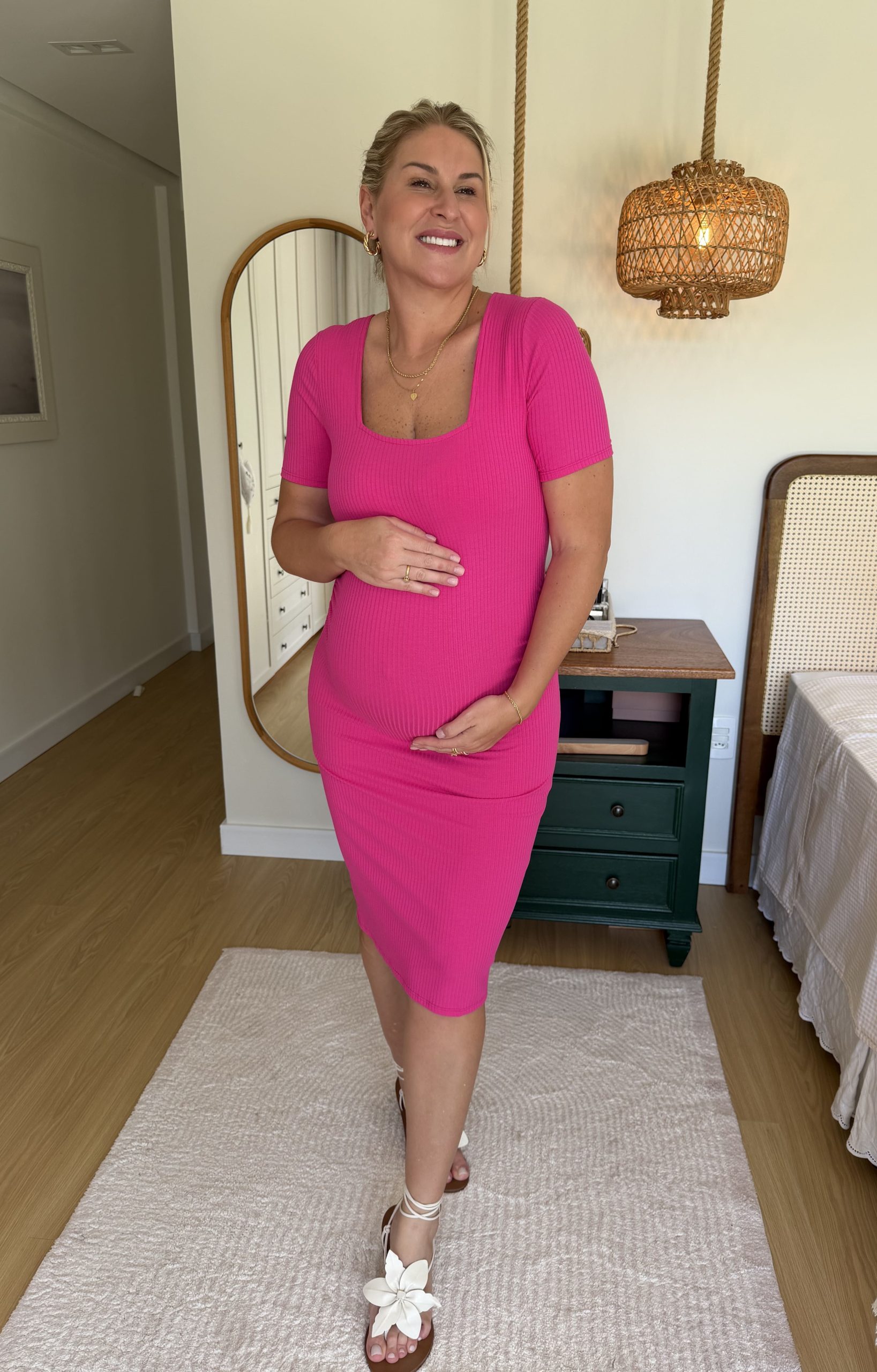 Vestido Gestante Canelado Decote Quadrado Romana Pink