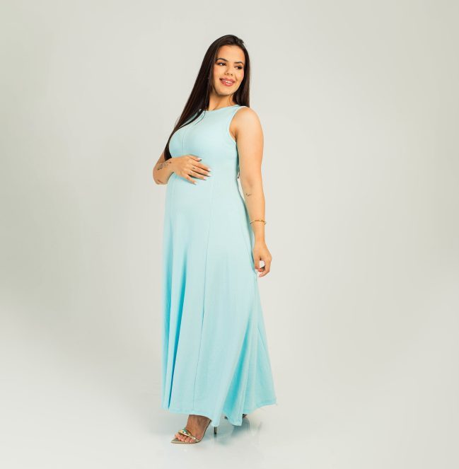 Vestido Gestante Canelado Regata Anna Azul