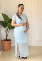 Vestido Gestante Longo M/C em Tule Naomi Azul