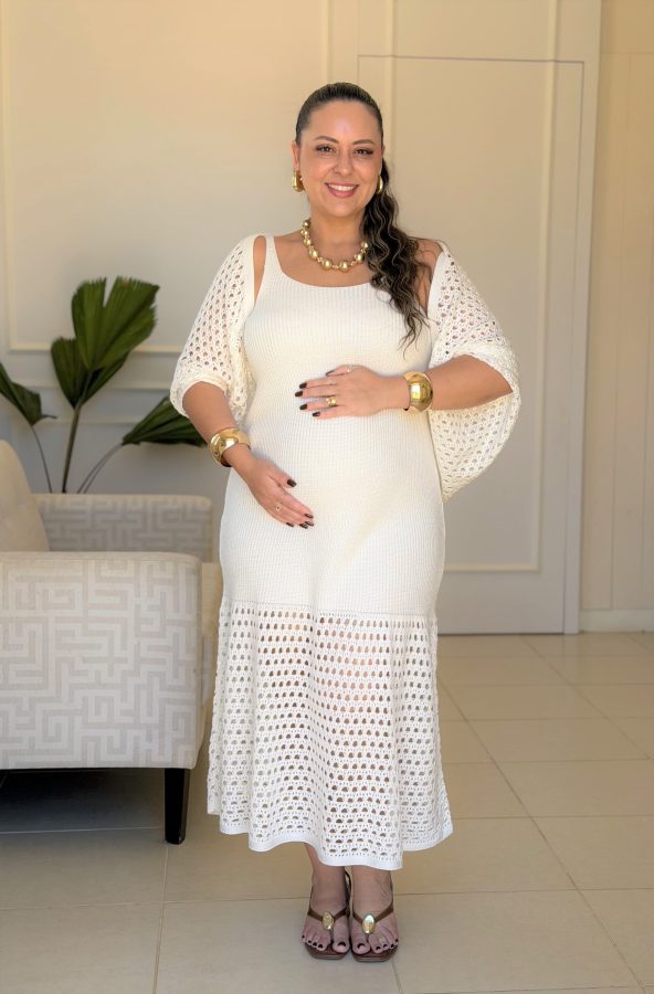 Este vestido gestante midi em tricô premium foi desenvolvido para acompanhar você em todas as fases da gravidez, oferecendo máximo conforto, estilo e caimento impecável. Confeccionado em um tricô de alta qualidade, com muito elastano, ele se adapta perfeitamente às curvas do corpo sem apertar.