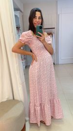 Vestido Gestante Midi Floral Luma Rosa
