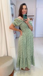 Vestido Gestante Midi Soltinho com Manga Princesa – Tamanho Único