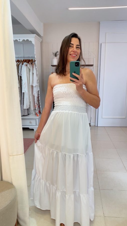 Vestido Gestante Midi Soltinho Tomara que Caia – Tamanho Único