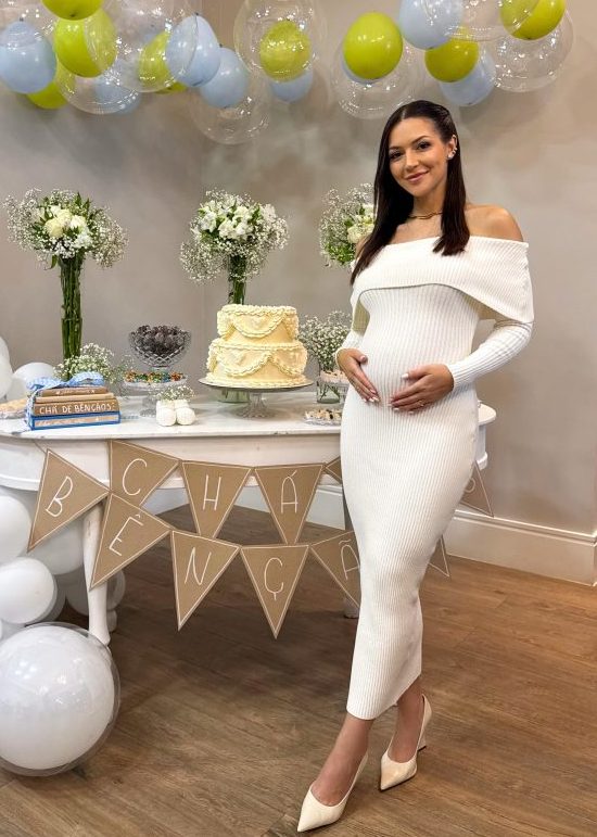 Este vestido midi foi projetado para proporcionar conforto e elegância durante a gestação. Feito de uma mistura luxuosa de modal e tricô, ele é suave ao toque e se adapta perfeitamente às suas curvas. Com suas mangas longas, é ideal para dias mais frescos, enquanto a gola adiciona um toque de sofisticação ao look. Perfeito para qualquer ocasião, este vestido é um must-have no guarda-roupa de qualquer futura mamãe que preza por estilo e conforto.