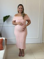 Vestido Gestante em Tricô Midi, Ombro a ombro, Com