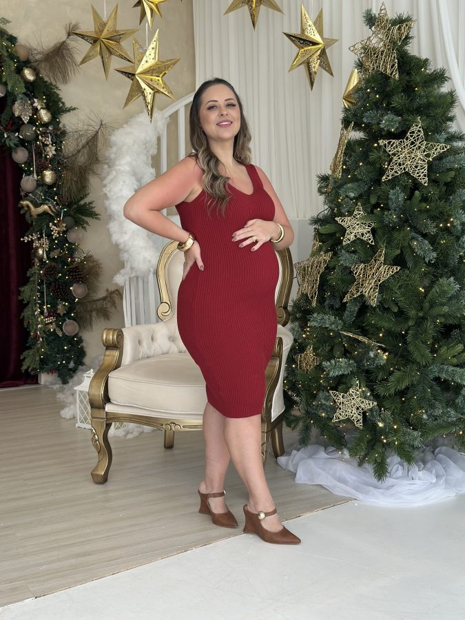 Vestido Gestante Regata Tricô Natalia Vermelho