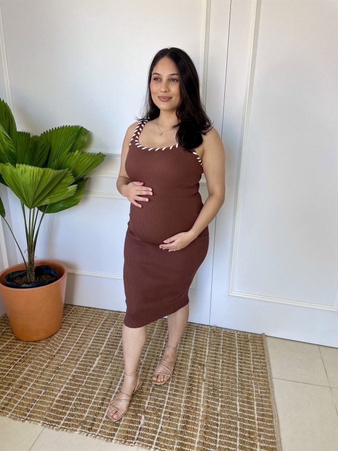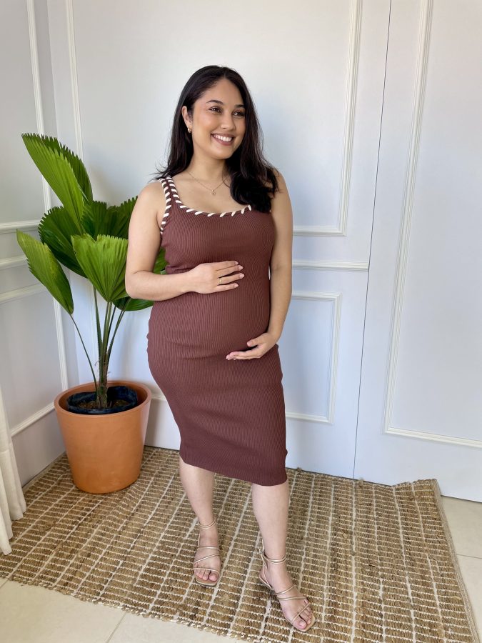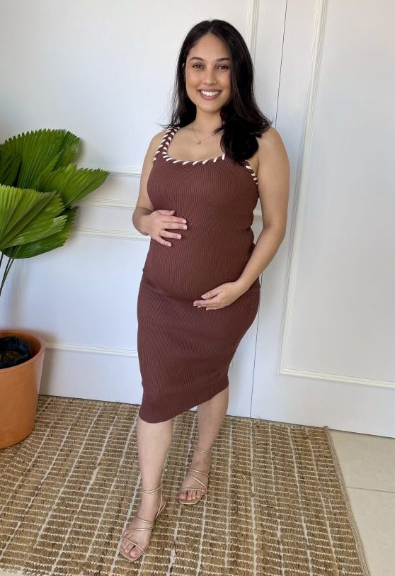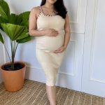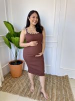Vestido gestante em tricô tamanho único veste um P ao GG, muita elasticidade, modelo midi, com lindos detalhes traspassados nas alças.
