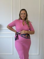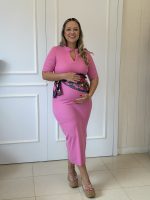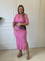 Vestido Gestante Midi Canelado. Com golinha, super confortável para uso do início ao fim da Gestação.
